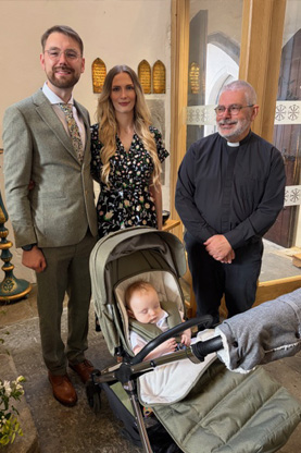 A wonderful happening at St.Martins on Easter Day when baby boy, Archer, was Baptised and welcomed into the church. His parents Christopher and Chloe Griffin were married at St Martins and before that happy event Christopher had also been Baptised at St. Martins. Fr Paul Collins, seen in photo, had officiated at all events. |